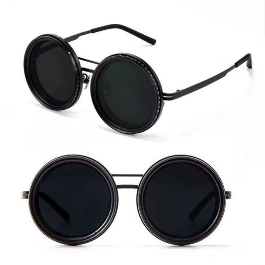 Stylish Rounded Polarized Glasses 1-9 Gears Adjustable Sunglasses with ND Filter Lenses Handcrafted Retro Glasses for Men Women